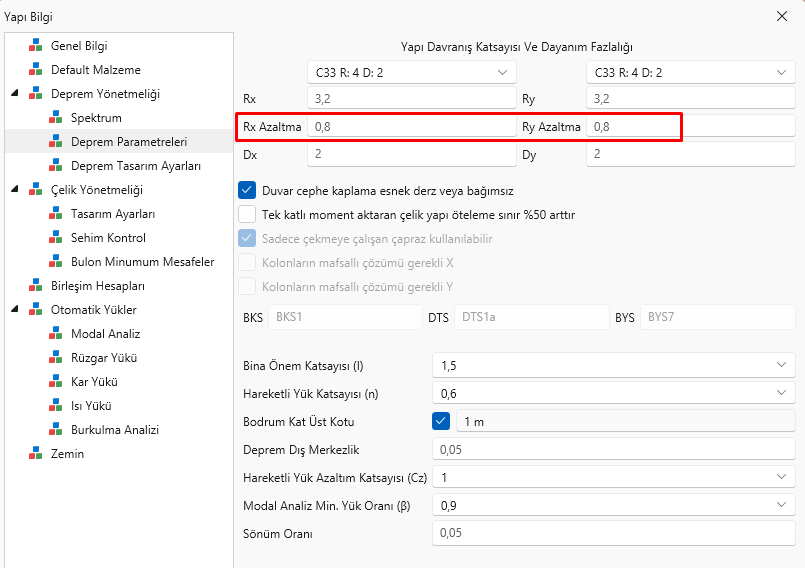 - Bu kontrolün sağlanamaması durumunda ilgili doğrultuda 4/5 azaltma katsayısı ayarlanabilir.
