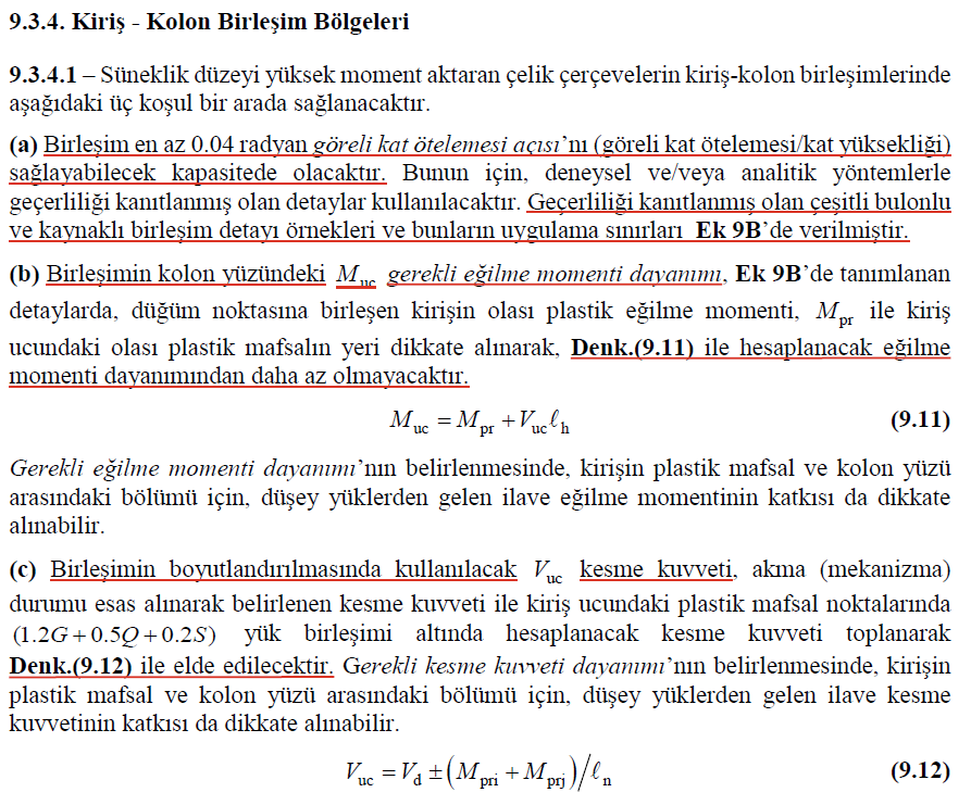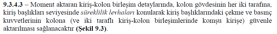 9.3.4 Kiriş Kolon Birleşim Bölgesi