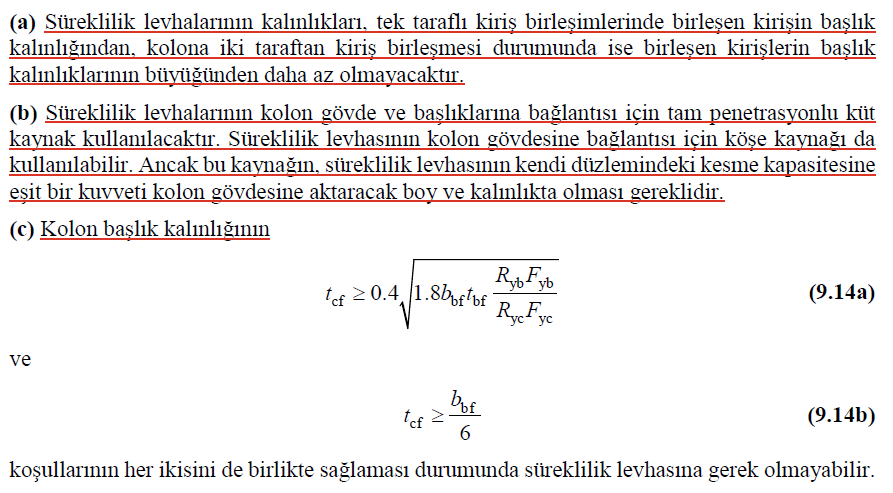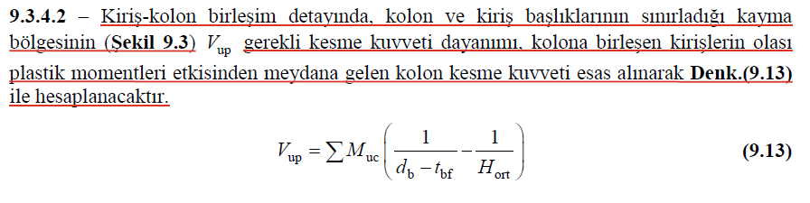 Bu kontrolün yapılabilmesi için kiriş ile kolonun moment aktaran bir birleşimle bağlı olması gerekmektedir.