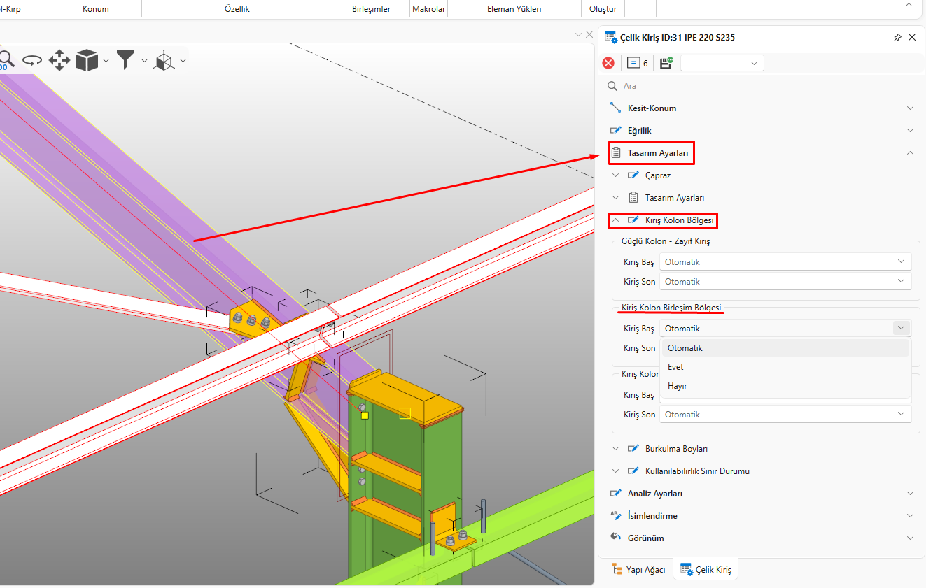 Yönetmelik 9.3.4 maddesine göre kiriş kolon birleşim bölgesi kontrolü yapılır. Yapılan kontrol de yetersizlik varsa kolon tasarım sonucunda bununla ilgili uyarı alırsınız.