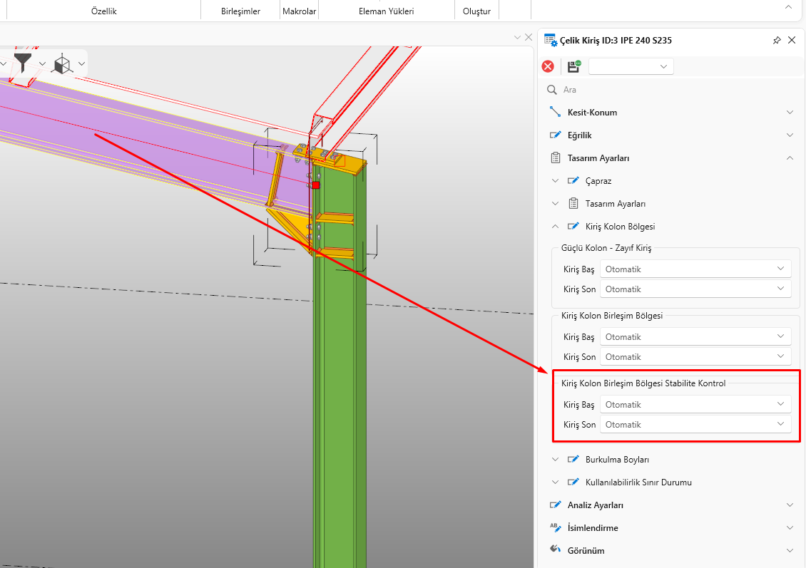 - Eğer birleşim bölgesini tuttuğunuzu düşünüyorsanız eleman bazında ayara müdahale edilebilir birleşim bölgesi stabilite kontrolünü kapatabilirsiniz.