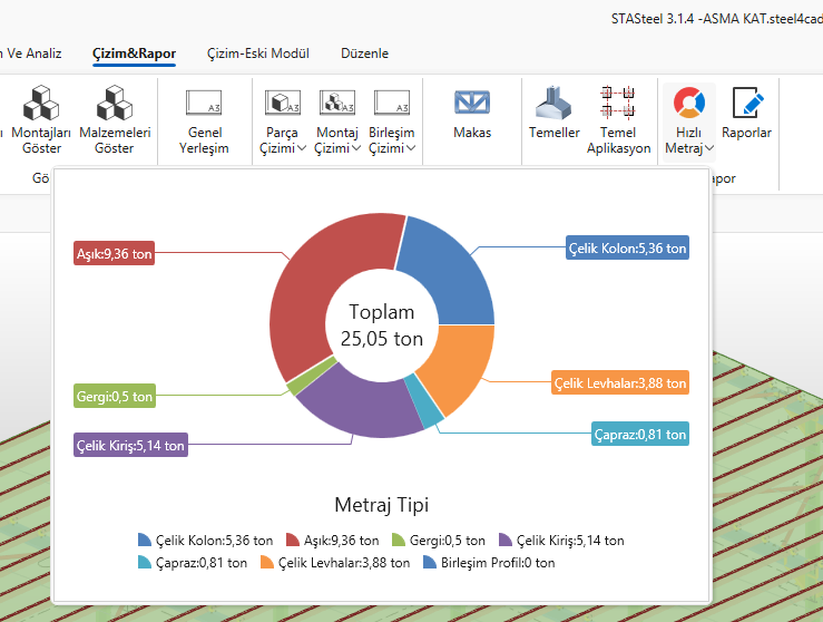 Çizim Hızlı Metraj Yapınıza ait hızlıca metraj detaylarını öğrenmek ve dağılımı incelemek için hızlı metraj grafiğini inceleyebilirsiniz.