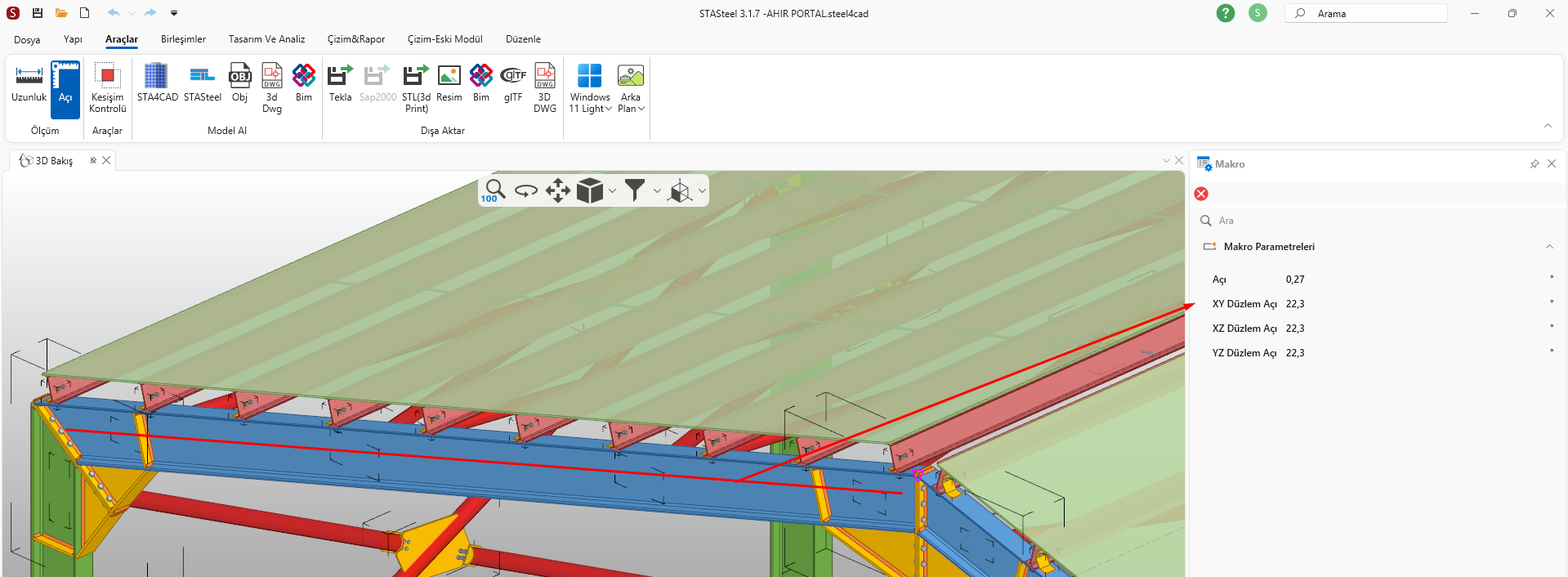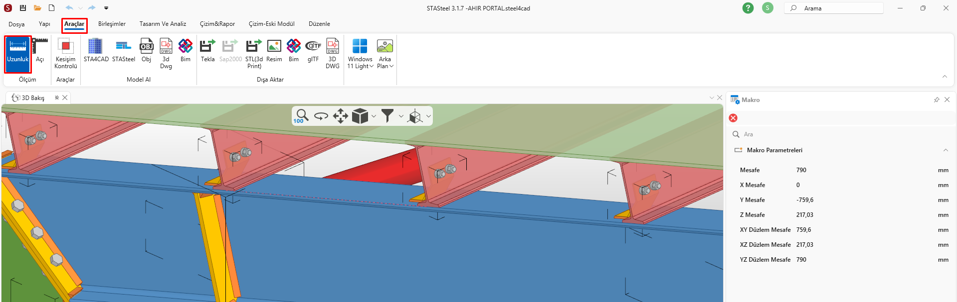 ModellemeAraçlar Ölçüm Makroları Uzunluk Uzunluk komutu çalıştırıldıktan sonra iki nokta verilerek bu noktalar arasındaki her doğrultuda aralarındaki mesafe öğrenilebilir. Açı Açı komutu çalıştırılarak verilen bir merkeze göre iki nokta arasındaki açı öğrenilebilir.