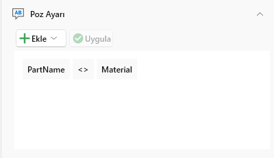 Pozu verilen elemanın parça ismini poza eklemek için kullanılabilir |