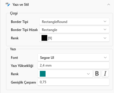 Yazı font yüksekliğinin girildiği kısımdır. Çıktı alındığında kağıt üzerinde görünen yüksekliği temsil eder. |